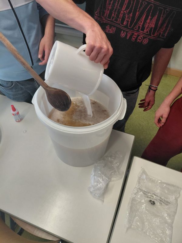 Nachdem einige Vorkehrungen getroffen worden waren, wie zum Beispiel die Anmeldung beim Zoll, konnte am Buß- und Bettag, 21.11.2024, endlich der Brautag des diesjährigen P-Seminars unter dem geschulten Auge von Herr Hutschenreuther starten. Pünktlich um 9 Uhr ging es los mit den letzten Vorbereitungen und einer kurzen Besprechung unseres KI-generierten Rezeptes.