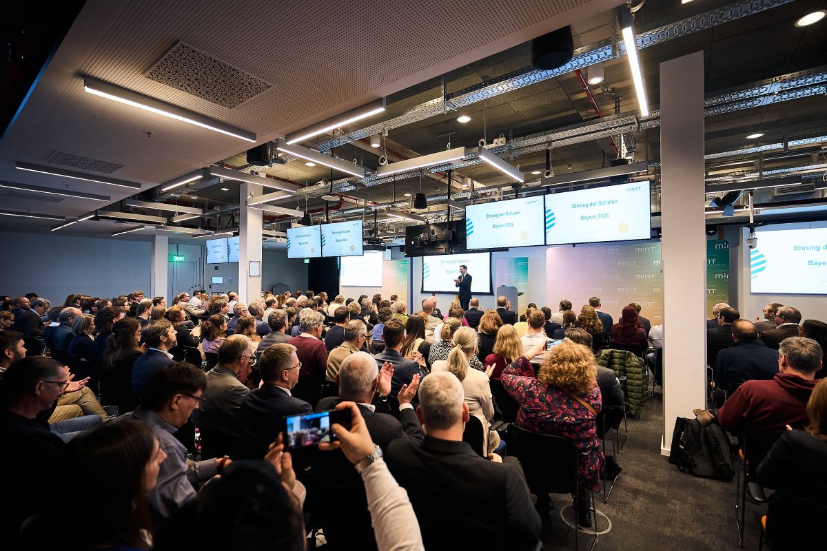 Herr Hutschenreuther weist alle drei Jahre nach, dass die Auszeichnung als „MINT-freundliche Schule“ nicht nur ein Gütesiegel auf dem Papier ist – sondern dass tatsächlich eine nachhaltige MINT-Bildung stattfindet, mit Angeboten, die unsere Lernenden motivieren, fördern und auf Zukunft und Beruf vorbereiten. Dank vieler engagierter Lehrkräfte am BGM wird MINT-Freundlichkeit nicht nur sporadisch, sondern dauerhaft gepflegt. Dieser Einsatz wurde bei der Ehrungsfeier von den Staatsministern, Ministerialdirigenten und zahlreichen CEOs der vielen Unternehmen und Verbände immer wieder lobend hervorgehoben.