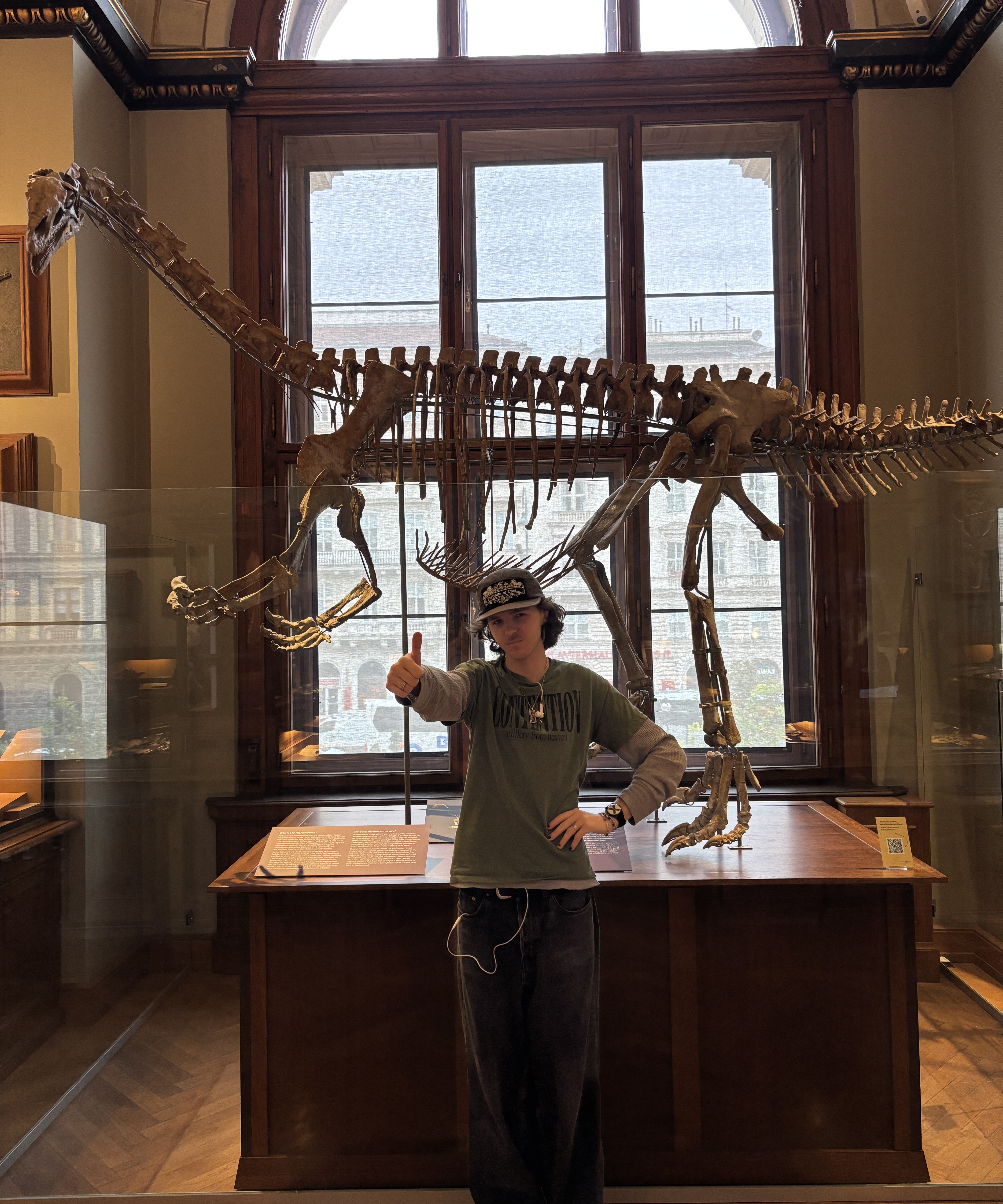 Am Donnerstag, schon dem vorletzten Tag, war die Planung komplett uns überlassen, da unser einziger Termin erst am Abend war und wir den Tag frei, jedoch für mindestens ein Museum, nutzen sollten. Für mich hat der Tag mit einem Besuch im Naturhistorischen Museum begonnen, da ich Dinos liebe und schon lange in keinem Museum mit prähistorischen Ausstellungsstücken mehr war. Bevor wir aber die Fossilien und Skelette finden konnten, warteten erst sechs(!) Säle mit verschiedensten Mineralien und Steinen auf uns, was auch sehr schön anzusehen war. Bei den Fossilien angelangt gab es neben üblichen Abgüssen tatsächlich einen echten Plateosaurus, der zu 61% komplett ausgegraben wurde, was schon sehr beeindruckend war. Wir sahen uns noch den Rest des ersten Stocks an, wo Säbelzahntiger und etliche Vorfahren des Menschen zu sehen waren, dann machten wir uns aber langsam auf den Weg, etwas zu Mittag zu finden. Danach gingen wir auf Empfehlung zum Naschmarkt, um uns dort überraschend billige Falafel zu holen und uns mit Proviant für die am nächsten Tag anstehende Heimreise einzudecken, erneut zum Billa Pflanzilla, wonach aber ein wenig Ruhe im Hotel wie eine sehr gute Idee schien. Als es etwas später war, machten wir uns alle, natürlich in Abendgarderobe, auf den Weg zum Wiener Konzerthaus, wo wir uns die Wiener Philharmoniker ansahen. Gespielt wurde zuerst ein Konzert von Sergej Prokofjew und anschließend „Petruschka“ von Igor Strawinski. Auch wenn ein paar einschliefen, war es echt etwas Besonderes, eines der besten Orchester der Welt live miterleben zu können. Als sowohl Pianist und Orchester nach mehreren Runden Applaus dann endgültig fertig waren, stand es uns wieder frei, die restliche Zeit in der Stadt zu verbringen.