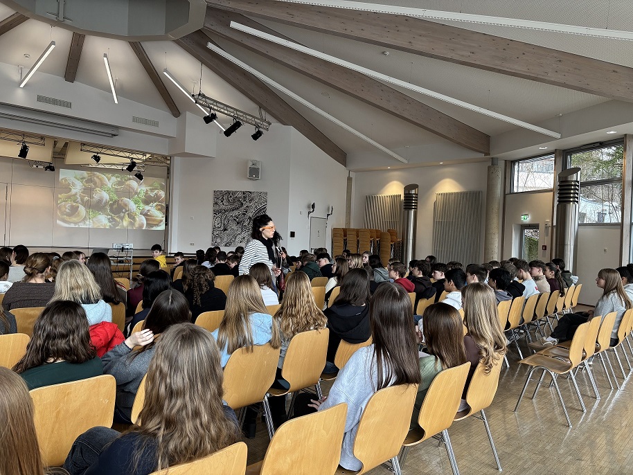 In den Pausen verwandelte sich die Aula in ein französisches Bistro. Von herzhaften Quiches bis hin zu leckeren Tartes – die Schülerinnen und Schüler boten selbstgemachte Spezialitäten an.