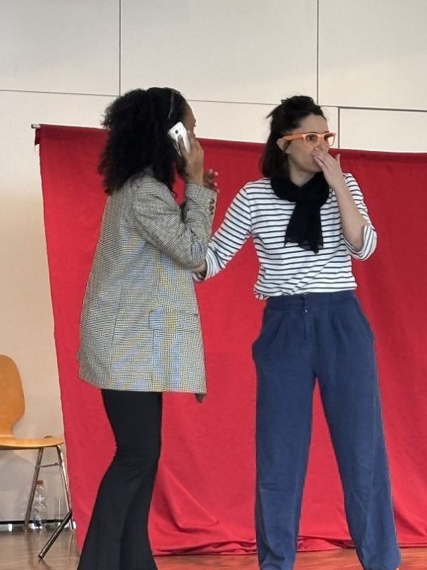 Marianne die Stadtführerin ist und in Paris lebt und einer deutschen Schulklasse die Stadt zeigt. Jo, eine Journalistin aus Berlin, kommt in die französische Hauptstadt, um eine Reportage über den Diebstahl von Kunstwerken zu machen. Im Louvre kreuzen sich ihre Wege – und ein ungewöhnlicher Vorfall stellt die Klassenfahrt auf den Kopf: Noémie, eine Schülerin, protestiert und löst einen kleinen Skandal rund um ein berühmtes Gemälde aus. Doch wogegen protestiert sie eigentlich? Mit viel Bewegung auf der Bühne vermischten die zwei Schauspielerinnen historische Begebenheiten der Kolonialzeit Frankreichs mit dem aktuellen Geschehen - dem Juwelenraub im Louvre.