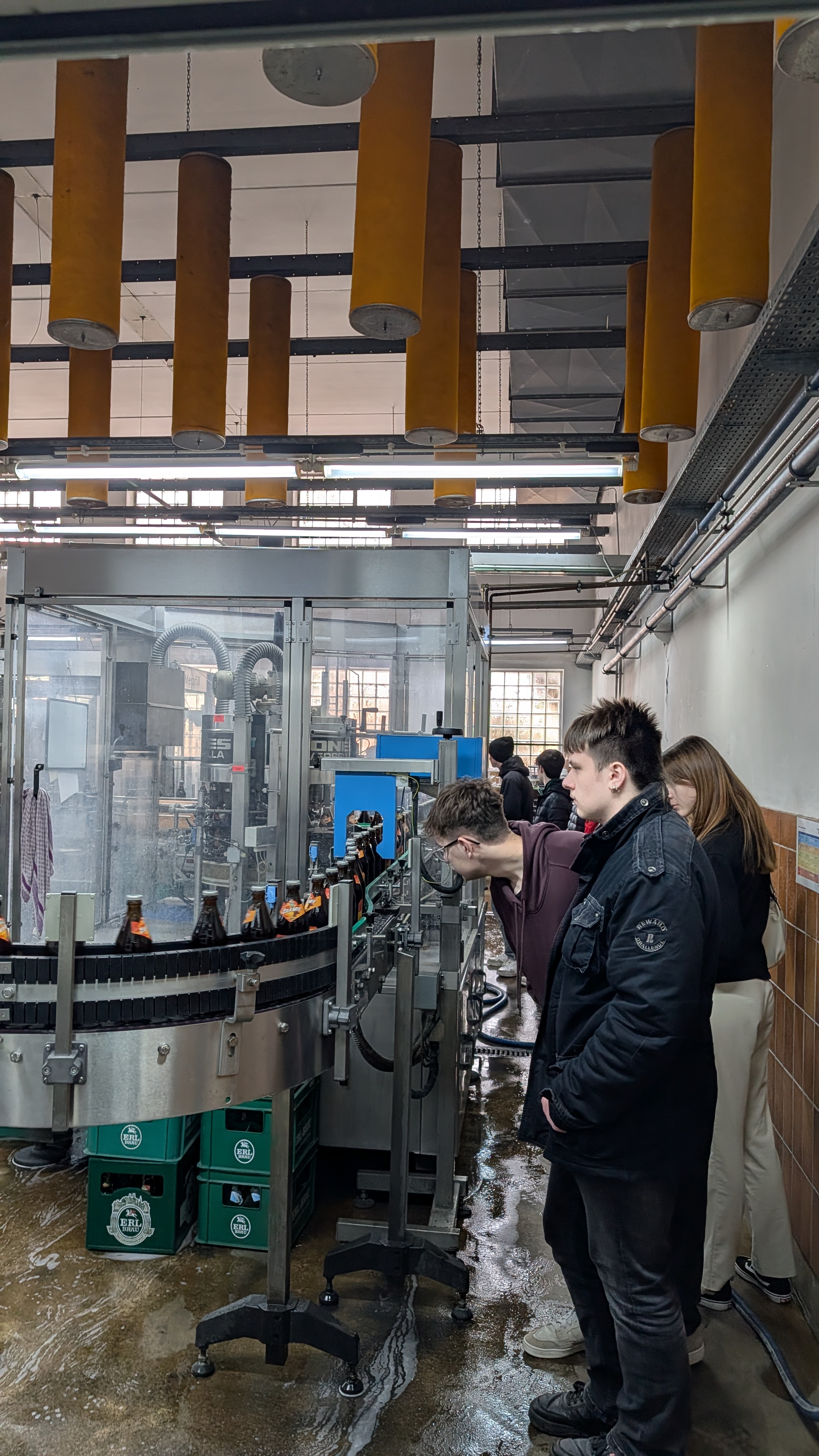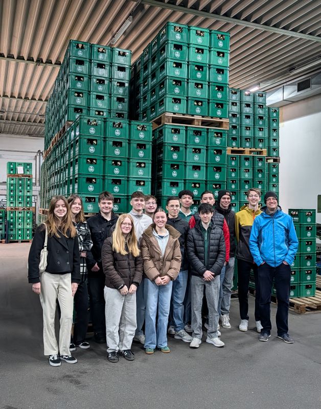 Am Dienstag, den 17.03.2026 durften wir, das P-Seminar Bierbrauen, gemeinsam mit unserem Lehrer Herr Hutschenreuther eine Führung durch die Traditionsbrauerei Erl genießen. Dabei führte uns Braumeister Josef Erl durch die heiligen Gemäuer der seit 1871 bestehenden Brauerei aus Geiselhöring und zeigte uns die einzelnen Schritte, wie aus Hopfen, Malz, Wasser und Hefe ein Bier nach bayerischem Reinheitsgebot gebraut wird. Am interessantesten fanden wir die vollautomatische Abfüllanlage, die, als wir sie erreichten, gerade den ERL-BRÄU Cola-Mix abfüllte. Danach stand noch eine Verkostung an, bei der wir entweder den Cola-Mix oder eine Halbe Bier verkosteten. Beides war ein echtes Geschmacks ERLebnis. Nennenswert ist außerdem, dass wir einen echten Bierkenner in unserem Seminar haben. Nämlich hat es Fynn Schiller geschafft, alle 10 verschiedenen Biersorten der Brauerei aufzuzählen, was mit einem Maßkrug belohnt wurde. Zu guter Letzt noch Danke an die Brauerei Erl für diesen schönen Vormittag und Danke an Herrn Hutschenreuther für das bis jetzt sehr schöne Seminar.